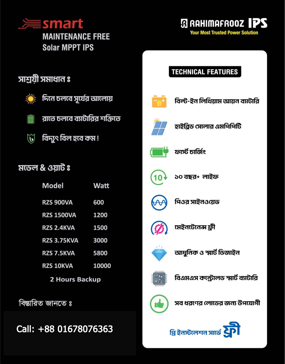 Rahimafrooz Smart IPS with Solar Panel Price List